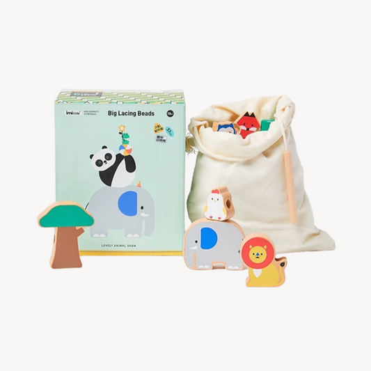 3 in 1 Wooden Lacing Beads (37pcs with Draw String Bag)